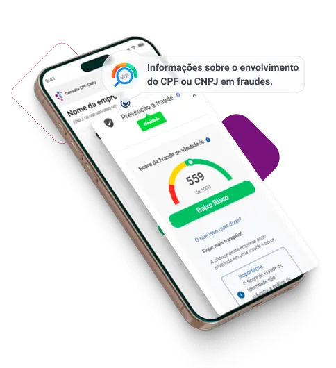 Tenha acesso imediato a informações cadastrais e sinais de risco do CPF ou CNPJ consultado.