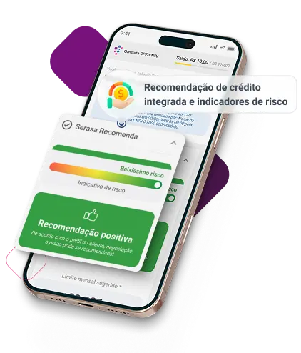A análise mais completa, com dados cadastrais, financeiros e comportamentais, além da recomendação da Serasa para indicar limite de crédito e reduzir risco de inadimplência.